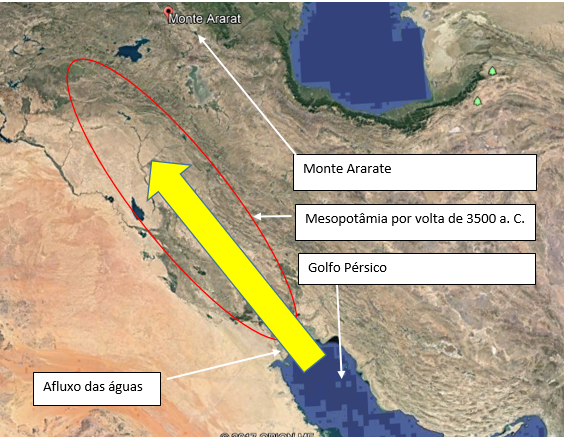 afluxo de água sobre a Mesopotâmia, tal como um tsunami, logo resultaria em as